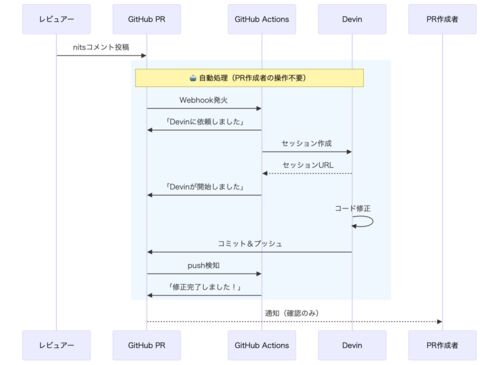 こんにちは、コアシス開発グループのfjtです! 今回は、コードレビューの「nitsコメント」をAIエージェント「Devin」で自動対応する仕組みを作った話をご紹介します。 1. はじめに なぜこの仕組みを作ったのか 私たちのチームでは、コードレビューにおいてコ…